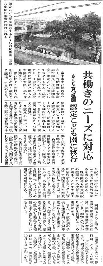 富士ニュースに、認定こども園さくら台幼稚園が掲載
